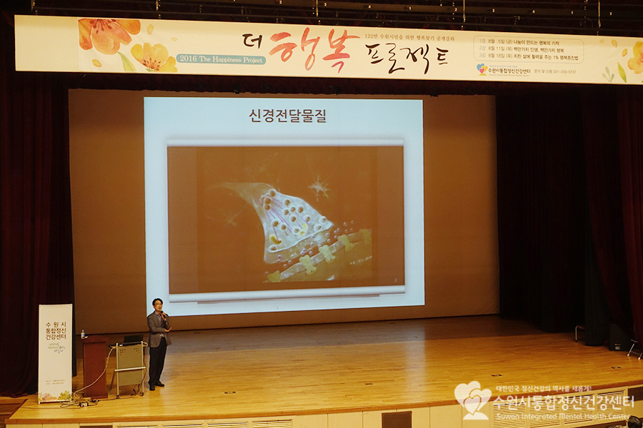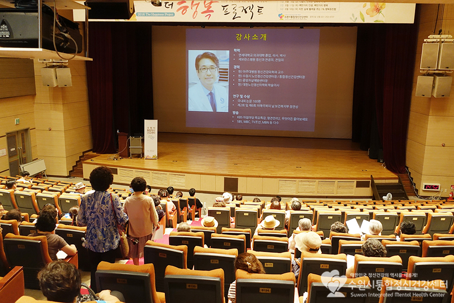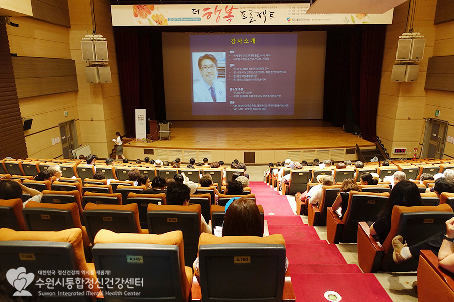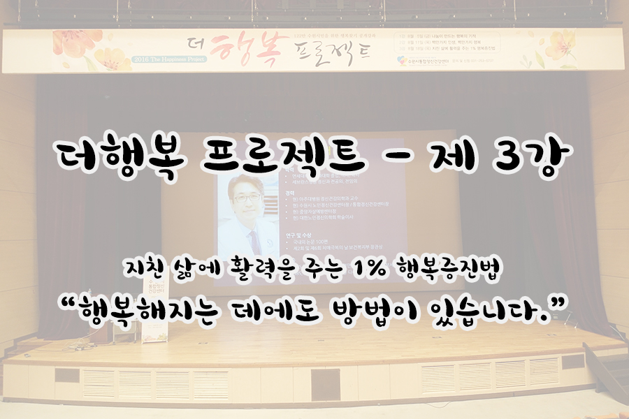 수원시통합정신건강센터는 이번달 5일, 11일, 18일 총 3회에 걸쳐 2016 더행복 프로젝트(The Happiness Project)를 진행하였습니다. 18일이였던 어제가 바로 더행복 프로젝트의 마지막 강의가 있던 날이였어요.