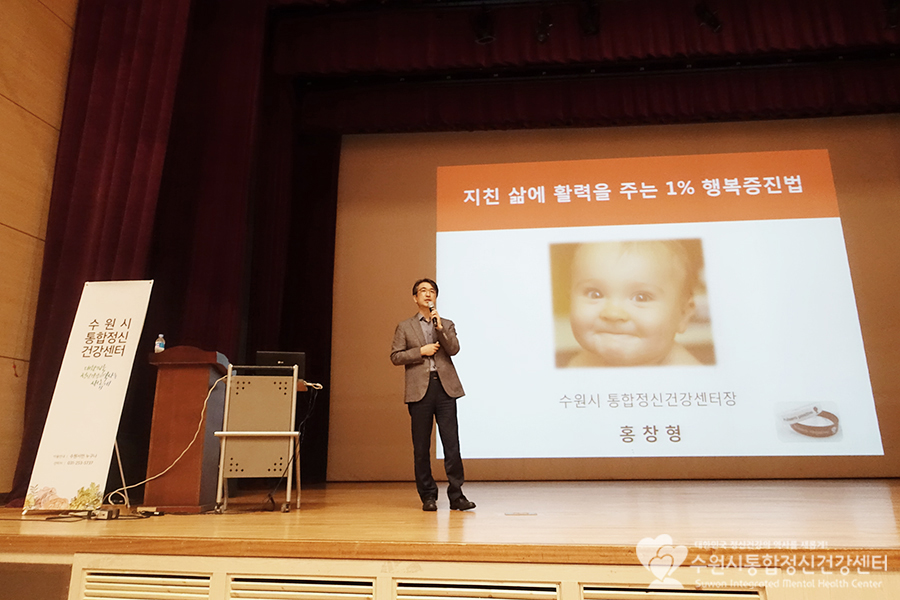 그리고 마지막 강의인 제 3강이 진행된 18일. 수원시통합정신건강센터의 센터장님이시자 정신건강의학과 전문의이신 홍창형교수님께서 [큰행복을 찾아서 " 지친 삶에 활력을 주는 1% 행복증진법] "행복해지는 데에도 방법이 있습니다" 라는 주제로 강의를 해주셨답니다.