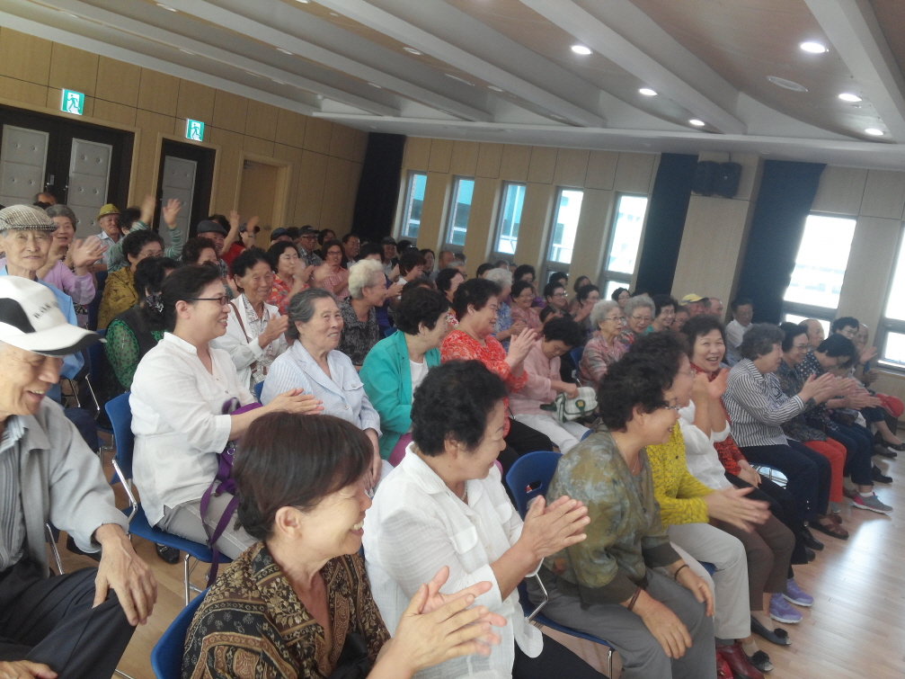 최경국 웃음치료사께서 레크리에이션을 진행하였고 참여한 어르신들의 얼굴에 웃음꽃이 피었고 매우 즐거워 하시는 모습이었습니다.