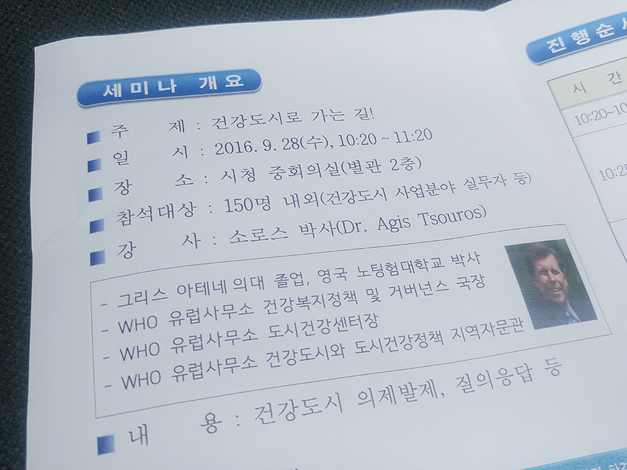 | 소로스 박사(Dr. Agis Tsouros)초청 건강도시 특별세미나 | |||