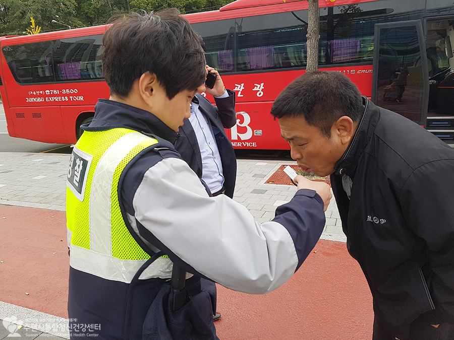 경찰아저씨와 함께 숲 체험 프로그램의 참여하는 모든사람들의 안전을 맡아주실 든든한 기사님들의 안전체크를 했어요~