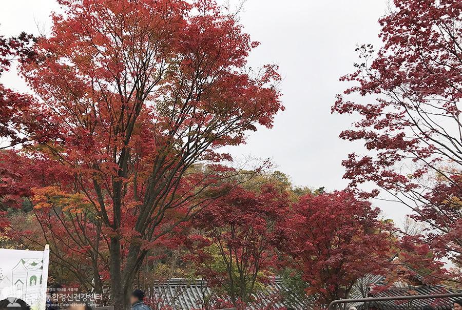 5분만에 도착한 곤지암 화담숲은 버스에서 내리자마다 여기저기 붉게 물든 나무들이 보이기 시작했어요~