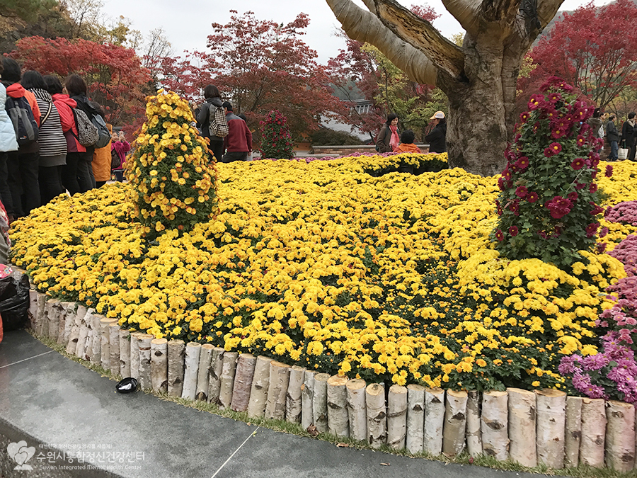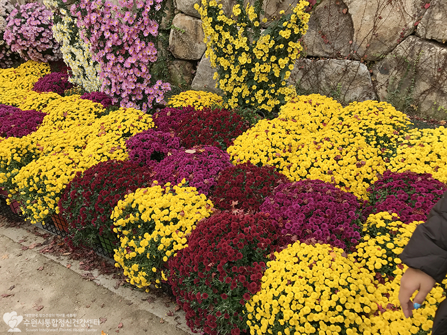 하나가득 색색이 다른 국화꽃이 정원을 가득 매우고 있답니다.