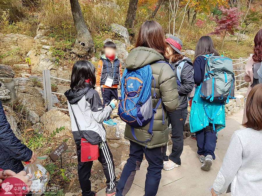 숲체험 프로그램에 참여한 분들도 숲해설가 선생님과 함께 설명을 들으며 한걸음한걸음 발걸음을 옮겼어요.