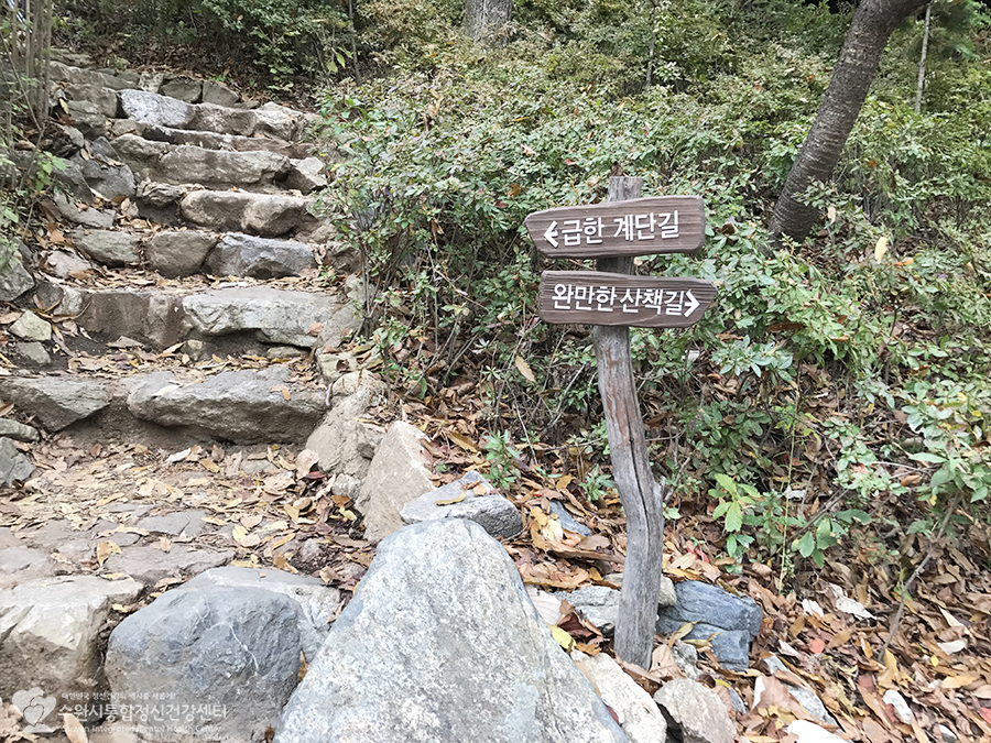 화담숲은 유모차를 끌고갈 수 있는 완만한 산책길과 바로 올라갈 수 있는 돌길인 급한 계단길 두가지로 조성되어있어요.