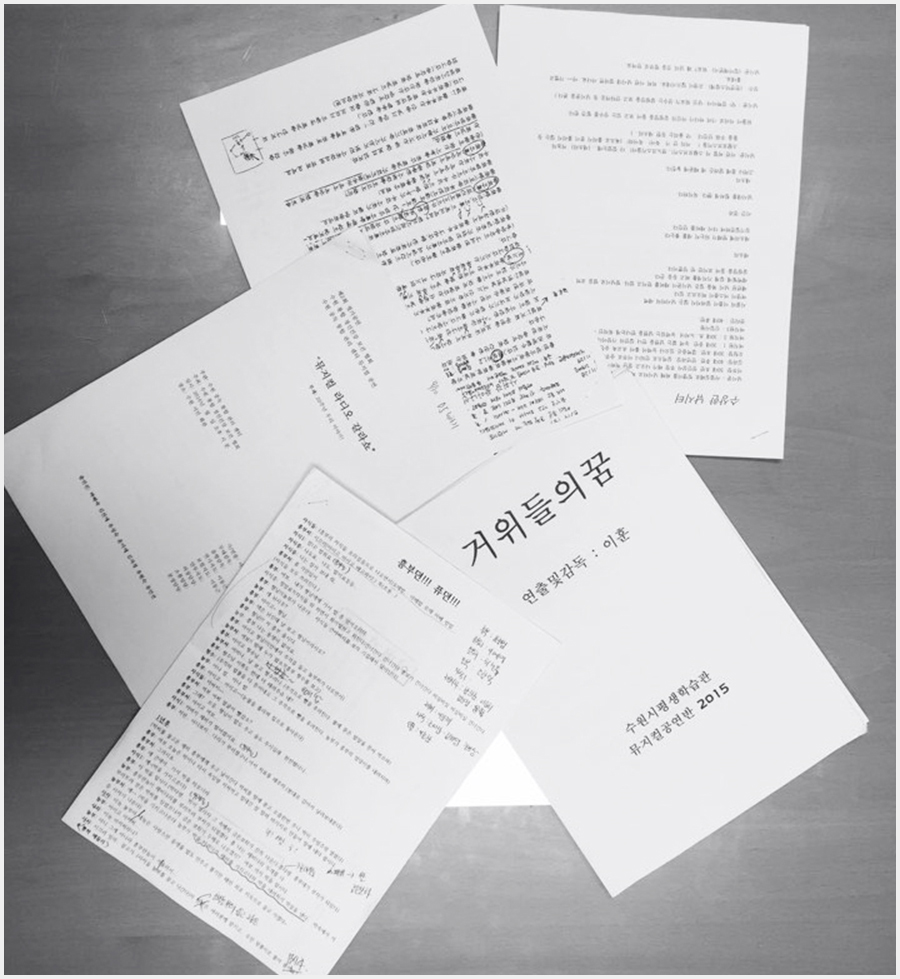 총연출을 맡으신 극단 산이 대표 이제룡선생님을 중심으로 경기도립극단수선단원이자 극단 깃발 대표 조영선선생님, 경기도립극단수석단원 강아림선생님, 뮤지컬배우 이훈선생님, 이동근선생님께서 연출을 맡아주셨어요.