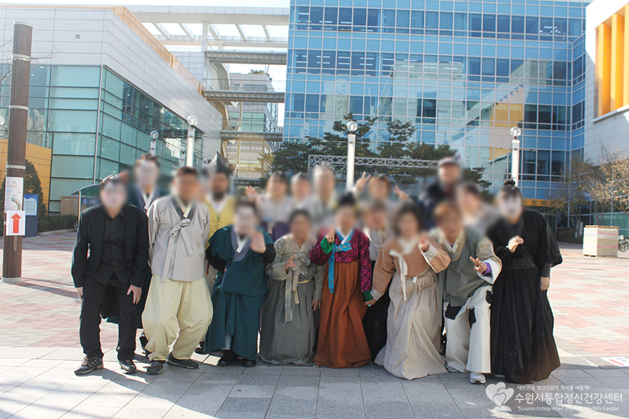 분장한 모습으로 점심식사를 하러 장안구청 식당으로 향합니다~