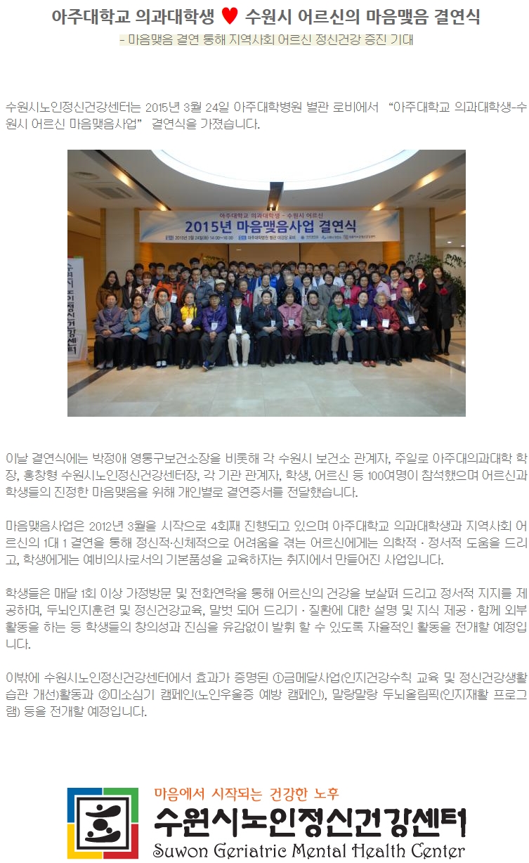 아주대학교 의과대학생과 수원시 어르신의 마음맺음 결연식