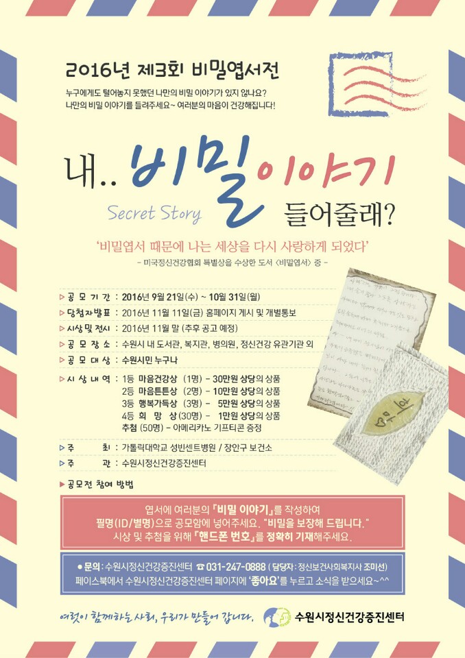 | 2016년 제 3회 수원시정신건강증진센터 비밀엽서전 | |||