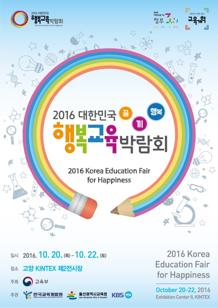 2016 대한민국 행복교육박람회가 10.20(목) ~ 10.22(토)까지 3일간 일산 킨텍스에서 개최됩니다.
