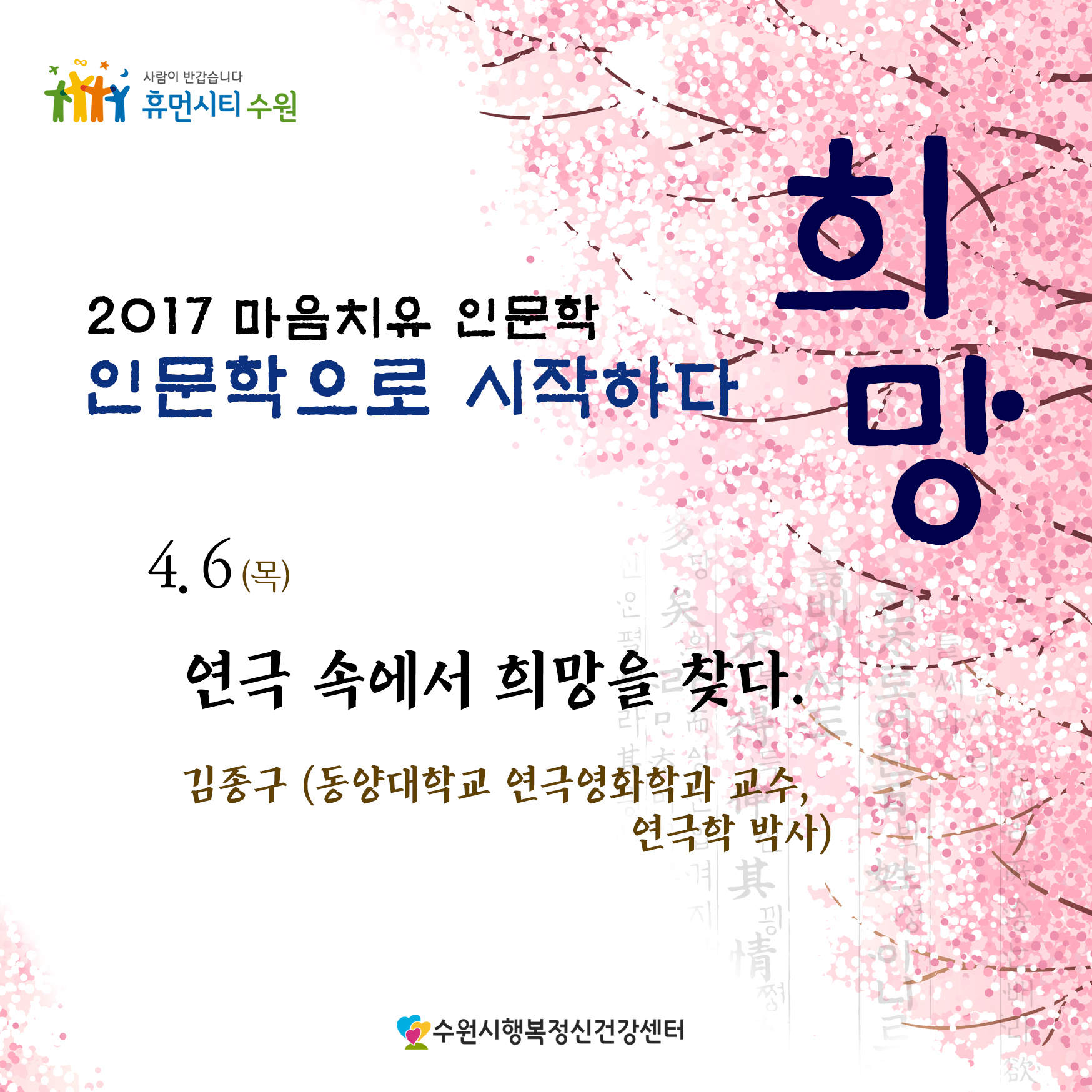 | 2017 행복인문학 '희망' 인문학으로 시작하다. 4월 6일 강좌안내 | |||