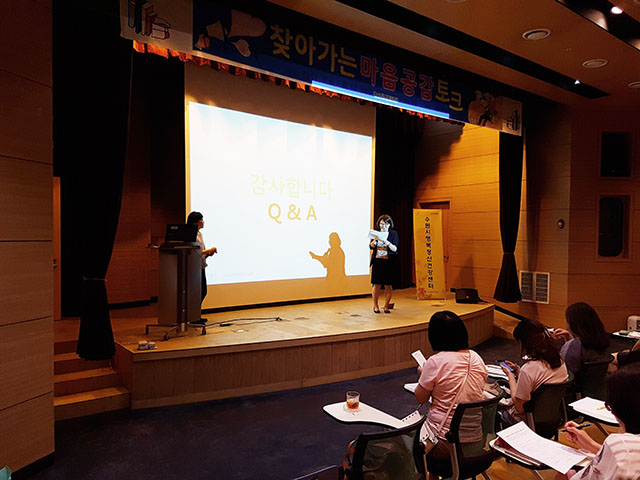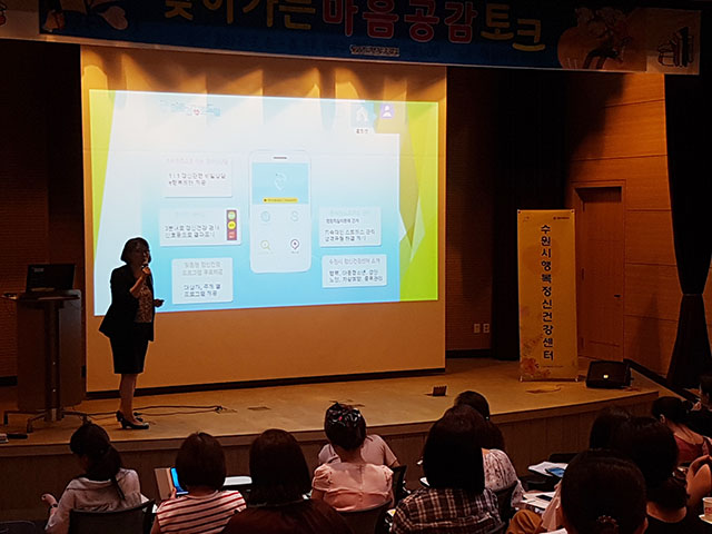 본격적인 강의에 앞서 이금자 팀장님께서 수원시 내 정신건강센터 소개와 더불어 손쉽게 나의 정신건강을 확인할 수 있는 모바일 앱! "마음건강로드맵"에 대해서 알려주셨답니다!