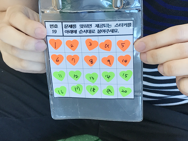 문제를 맞히실 때마다 개인 정답판에 스티커를 붙였는데요