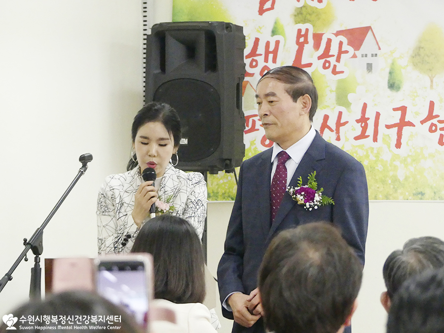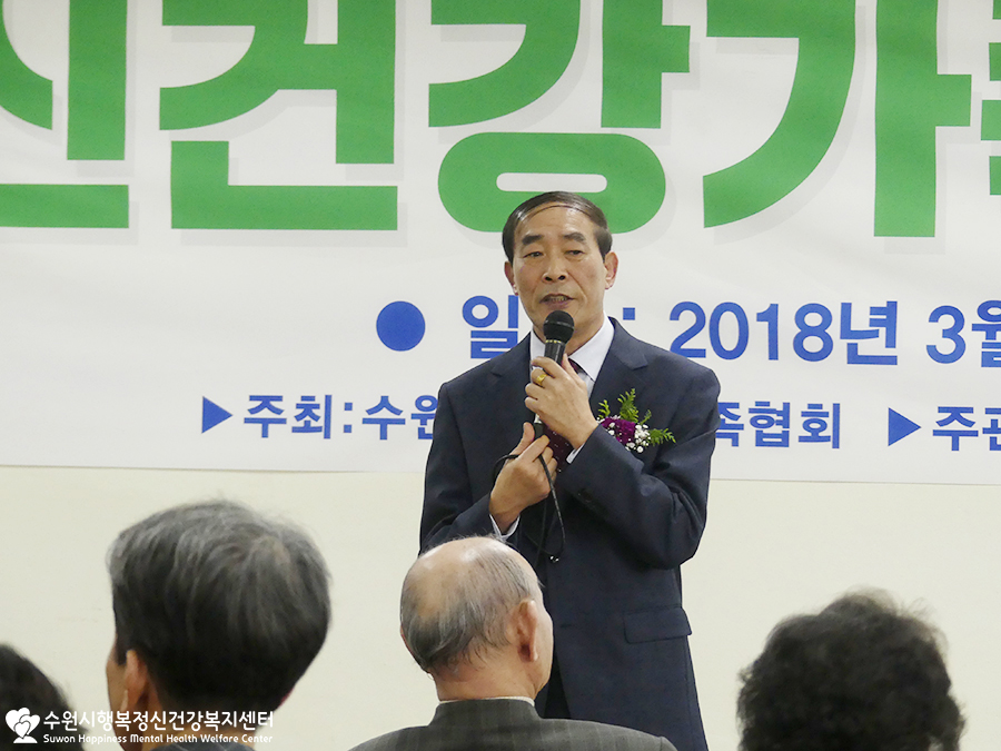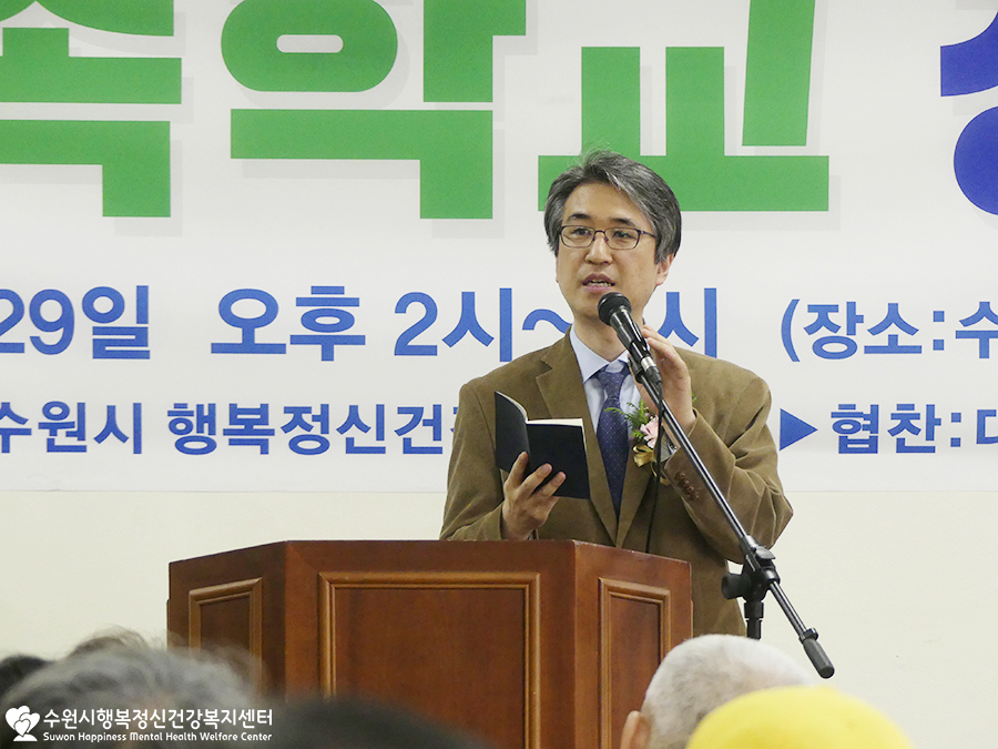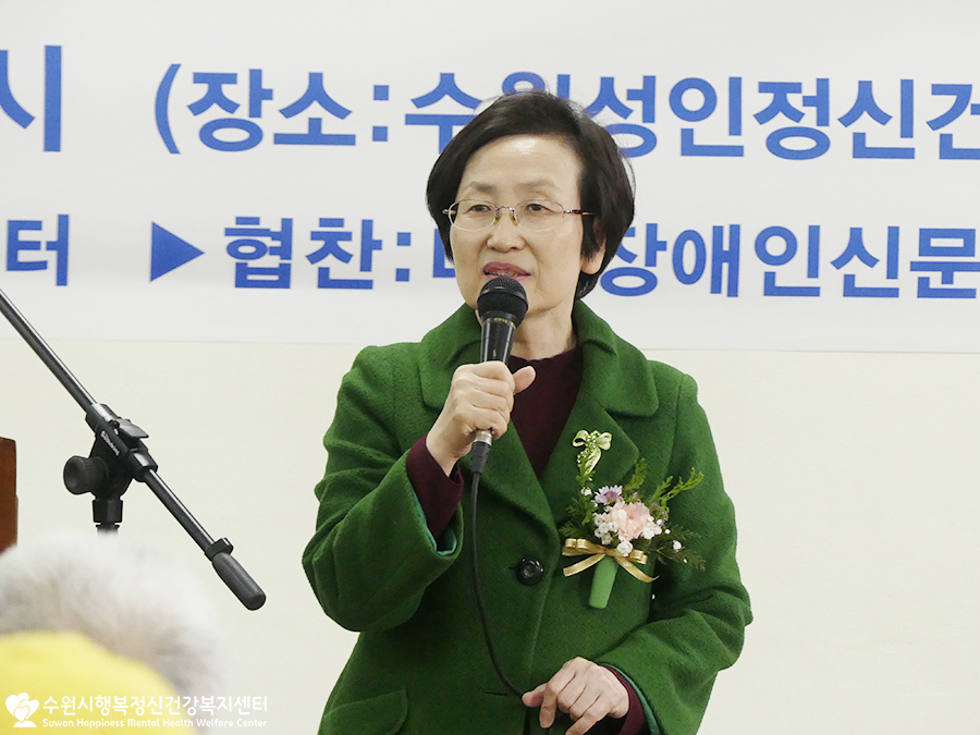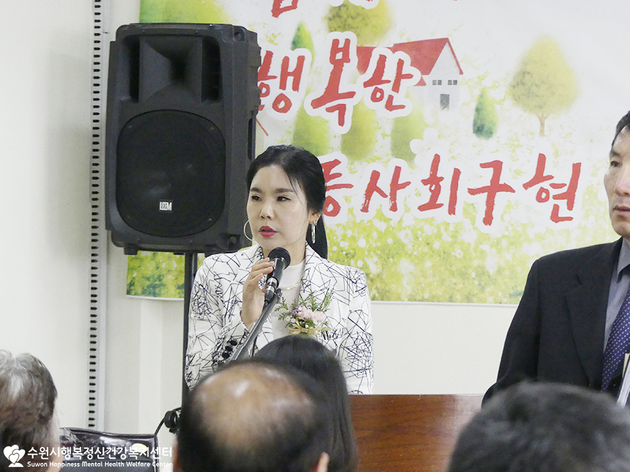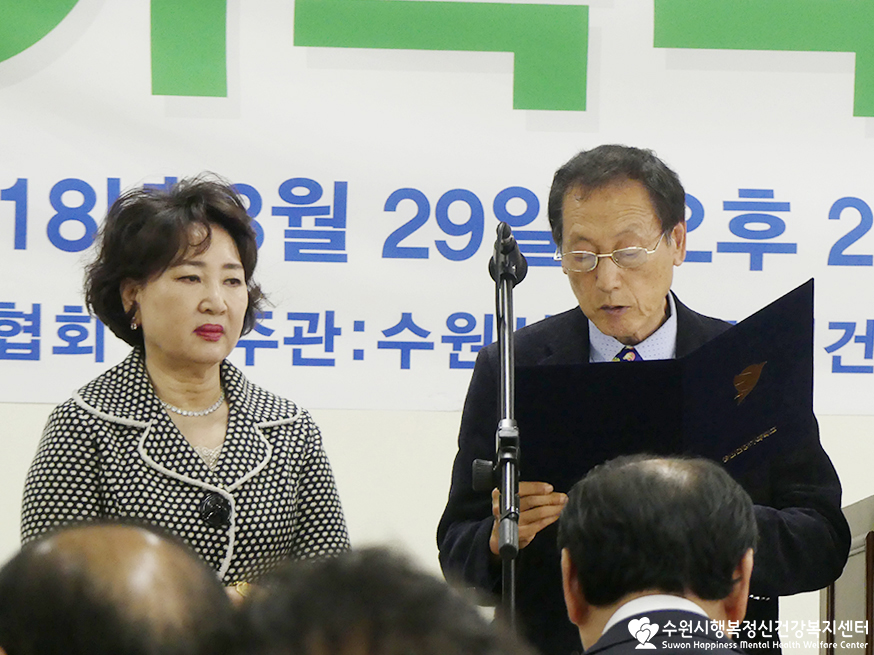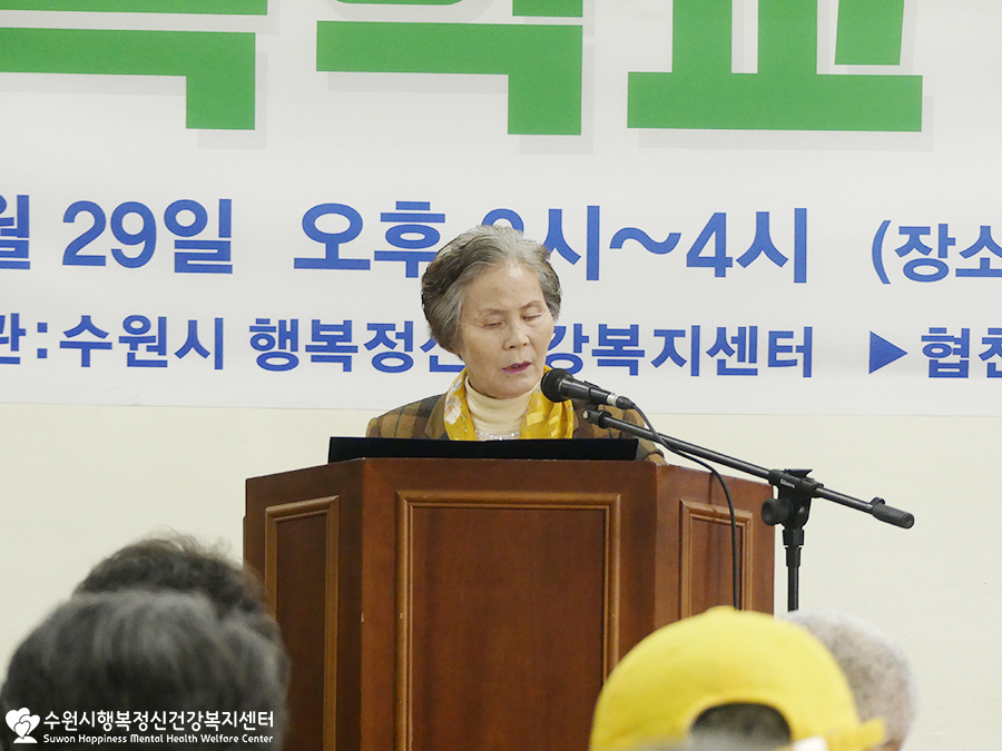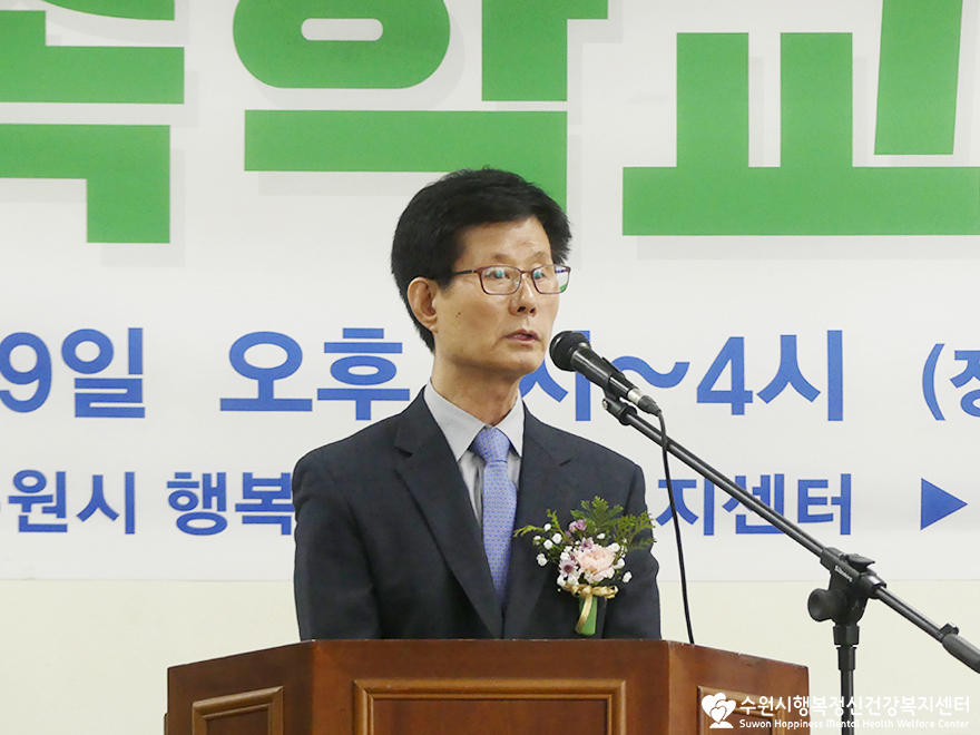 개인사정으로 참석하지 못하신 윤환숙 수원정신가족협회장님의 권한대행으로 가족정신협회장님께서 축사를 전해주셨어요.
