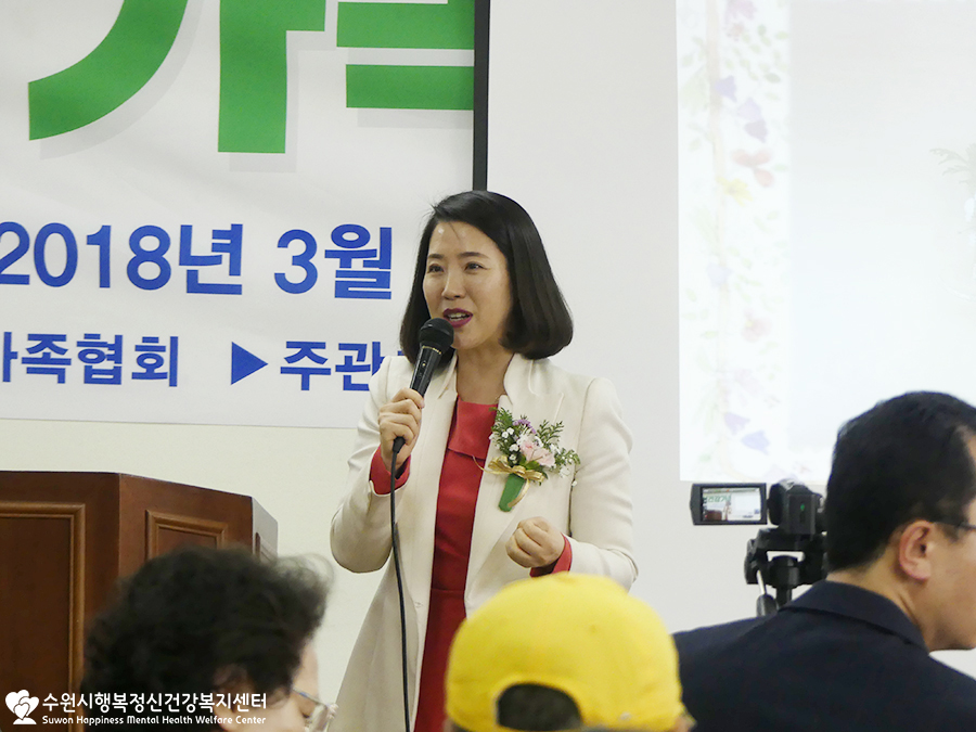 수원시 정신건강에 새로운 역사를 써내려가는데 있어서 열의를 다해 발로 뛰어주시는 김혜경소장님께서도 참석하셔서 축사를 전해주셨답니다. 많은분들이 축사를 통해 응원해주신 정신건강가족학교의 발대식!