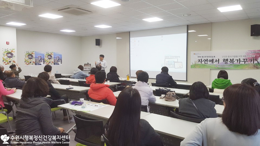 마음을 정화시킬 수 있는 마음돌봄교실로 생태치료법을 배우고 자연을 통한 조화로운 삶의 회복을 위하여 시민들이 참여할 수 있는 흥미로운 강좌를 진행하기 위해 탄생한 자연에서 행복가꾸기!