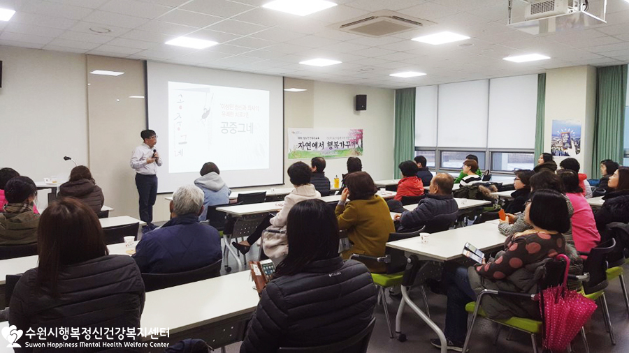 3월 21일에 진행된 강의는 자연과 정신건강이라는 주제로 행복한우리동네의원 안병은원장님께서 진행해주셨어요.