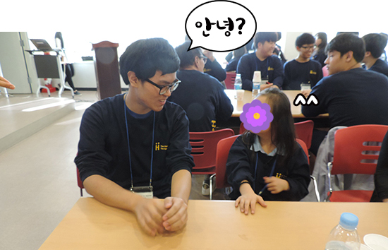 일찍 자리 잡은 멘토-멘티는 같은 티셔츠를 입고 자리에 착석! 벌써 멘티 아동과 친해진 학생도 보이네요^^