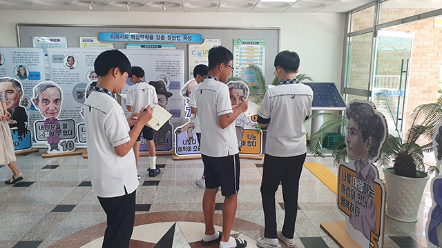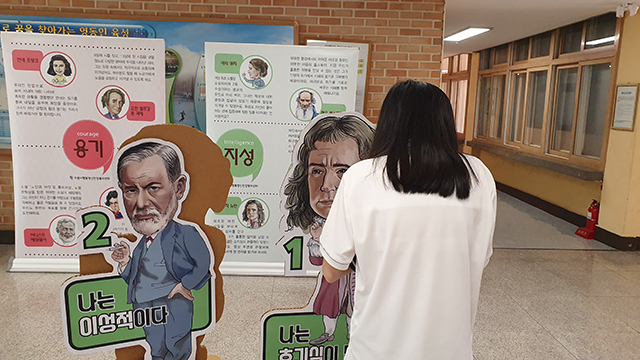 상반기에 이어서 정신건강위인 전시가 하반기에도 성황리에 진행되었습니다. 이번 하반기에는 영동중학교와 정천중학교 친구들이 위인전시를 만날 수 있었습니다.