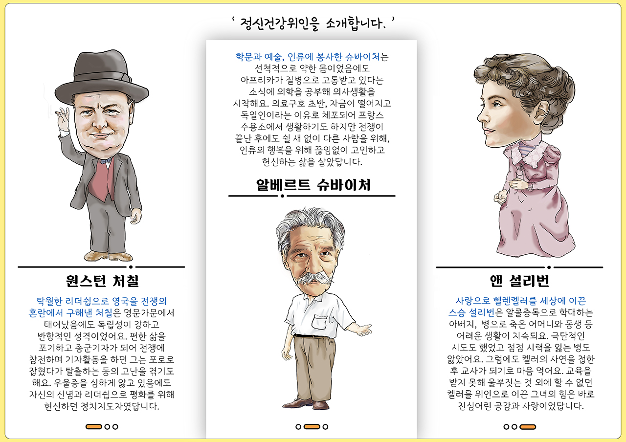 | 정신건강위인을 소개합니다 - 처칠 / 슈바이처 / 설리번 | |||