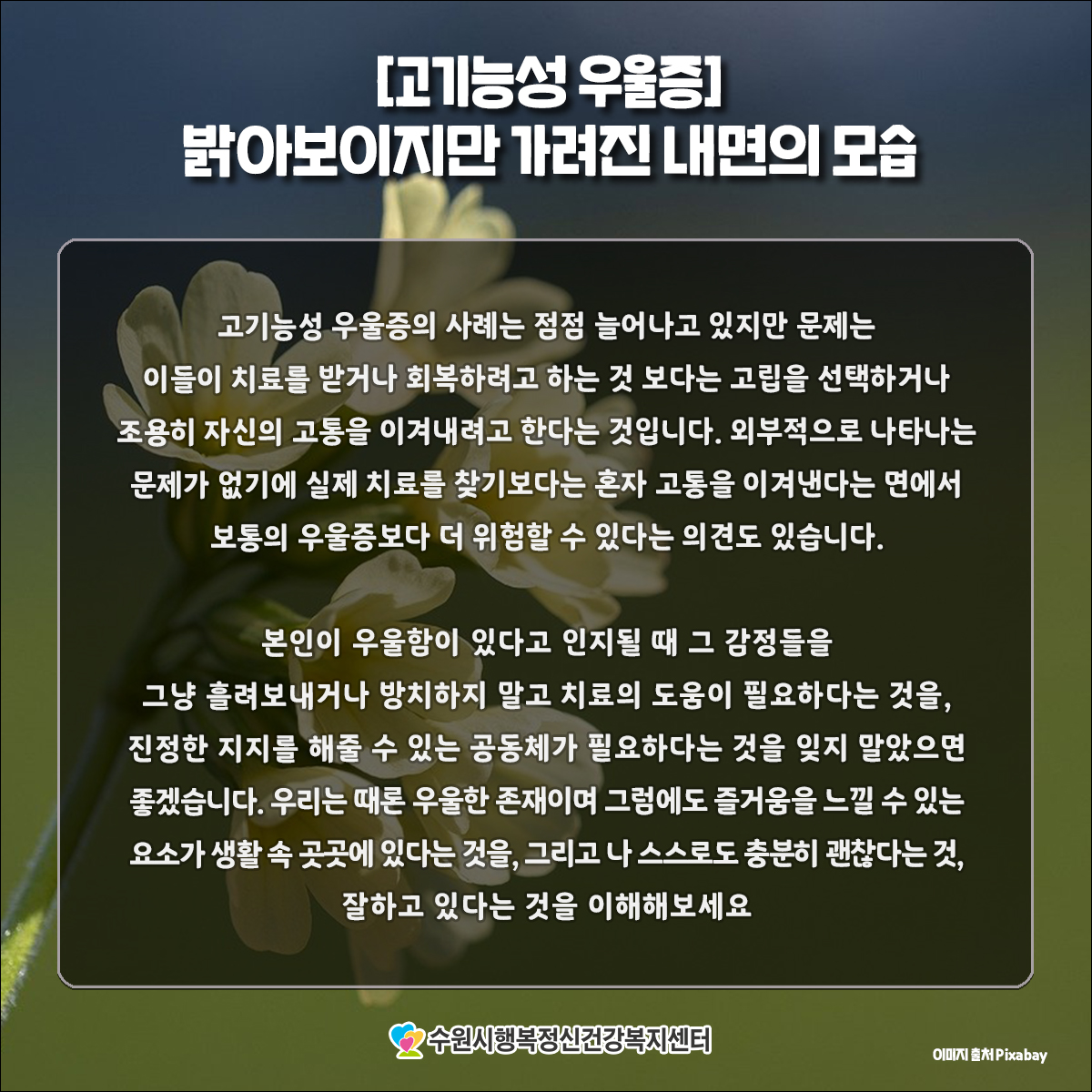 | [고기능성 우울증] 밝아보이지만 가려진 내면의 모습 | |||