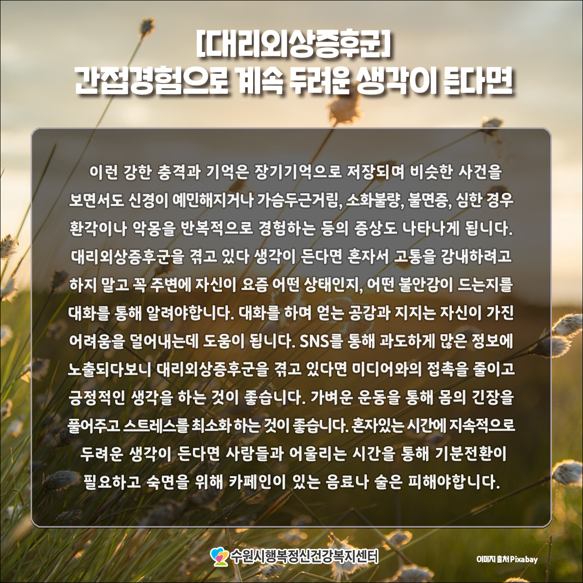 | [대리외상증후군] 간접경험으로 계속 두려운 생각이 든다면 | |||
