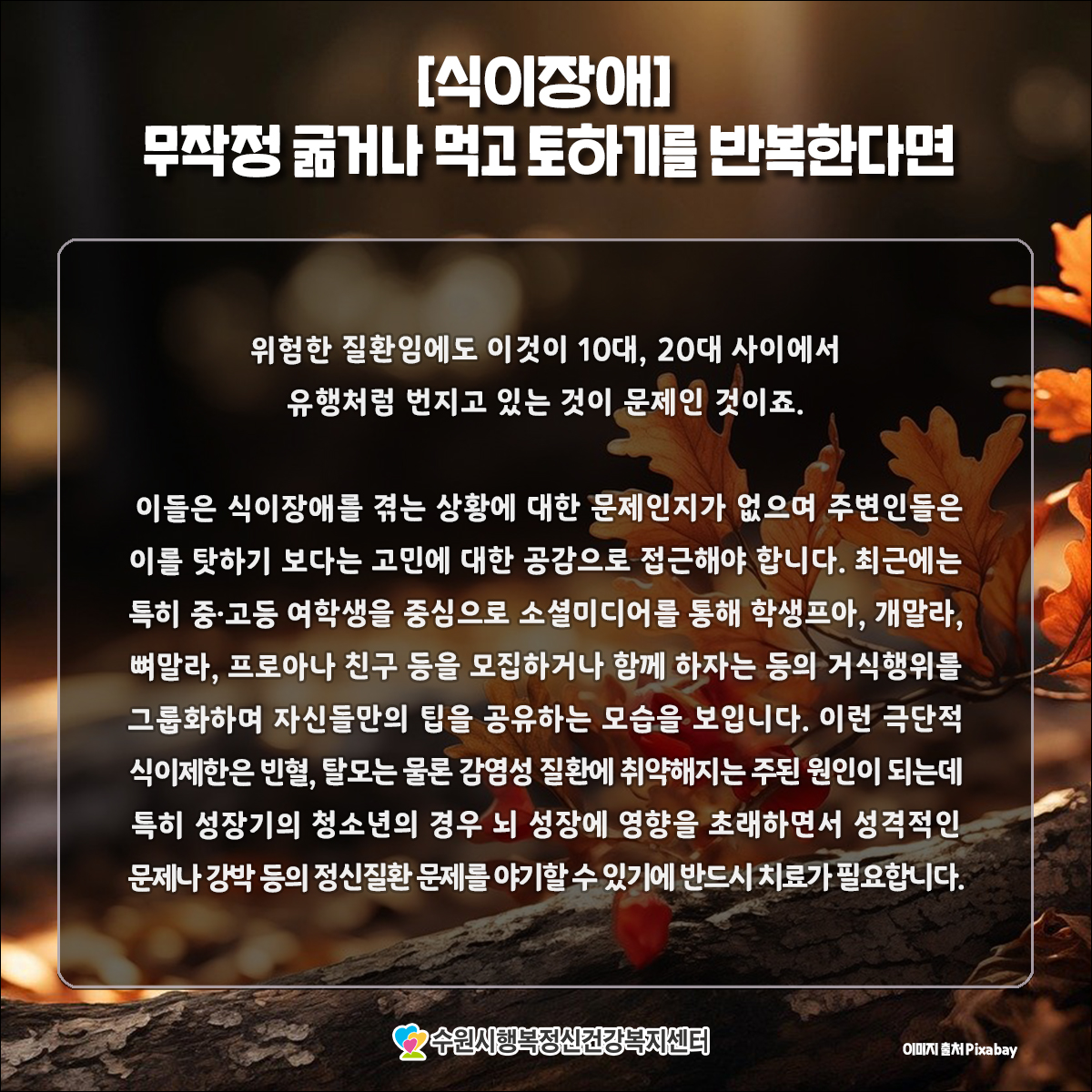 | [식이장애] 무작정 굶거나 먹고 토하기를 반복한다면 | |||
