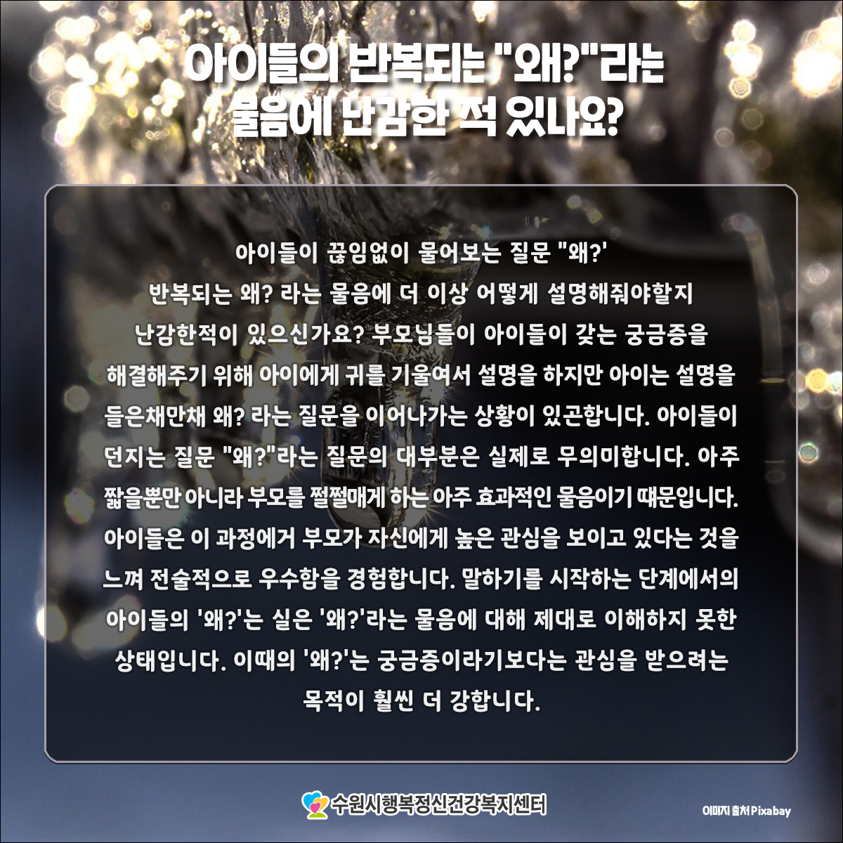 | 아이들의 반복되는 "왜?"라는 물음에 난감한 적 있나요? | |||