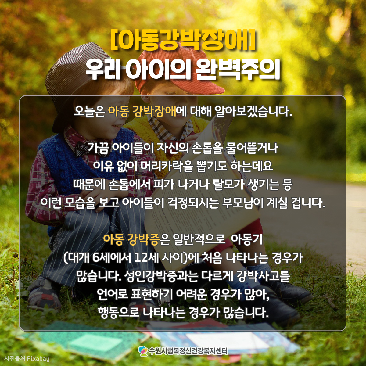 오늘은 아동 강박장애에 대해 알아봤어요.