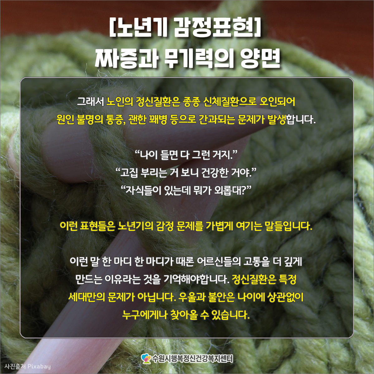 | [노년기 감정표현] 짜증과 무기력의 양면 | |||