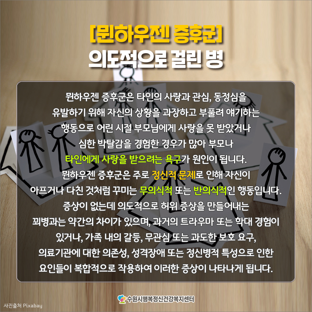 뮌하우젠 증후군은 주로 정신적 문제로 인해 자신이