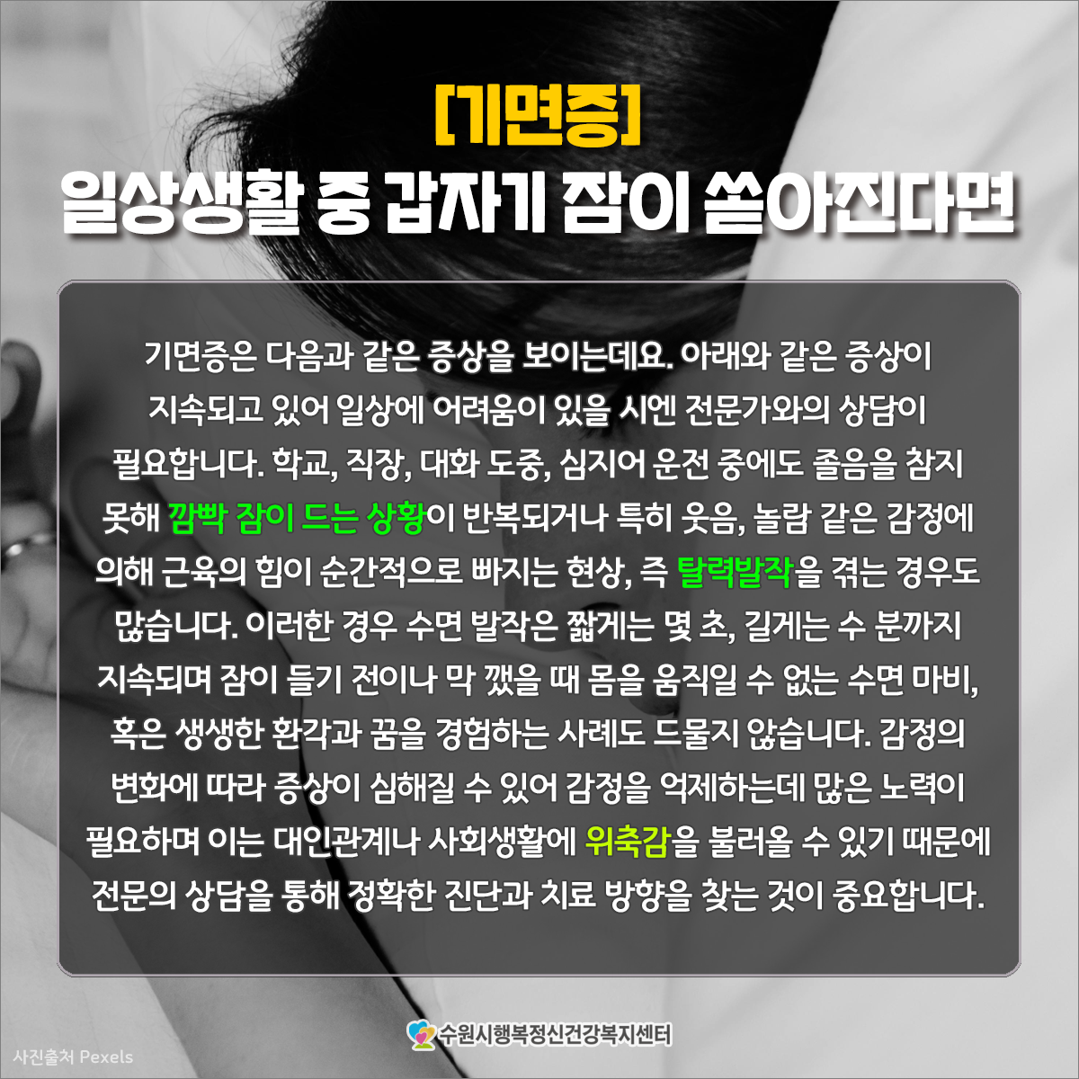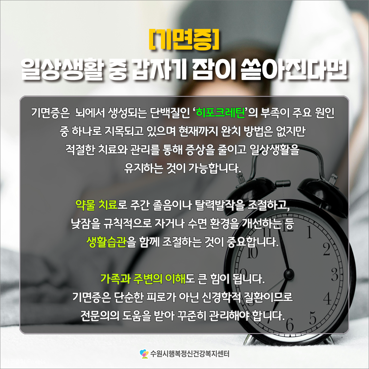 기면증은 단순한 피로나 게으름의 문제가 아닙니다.