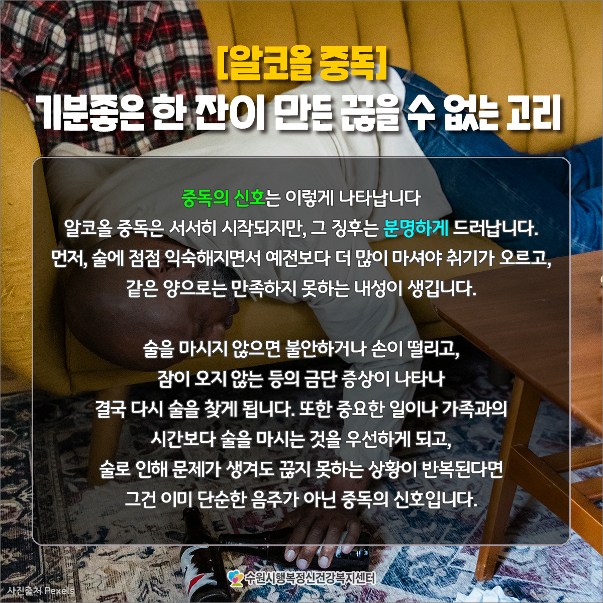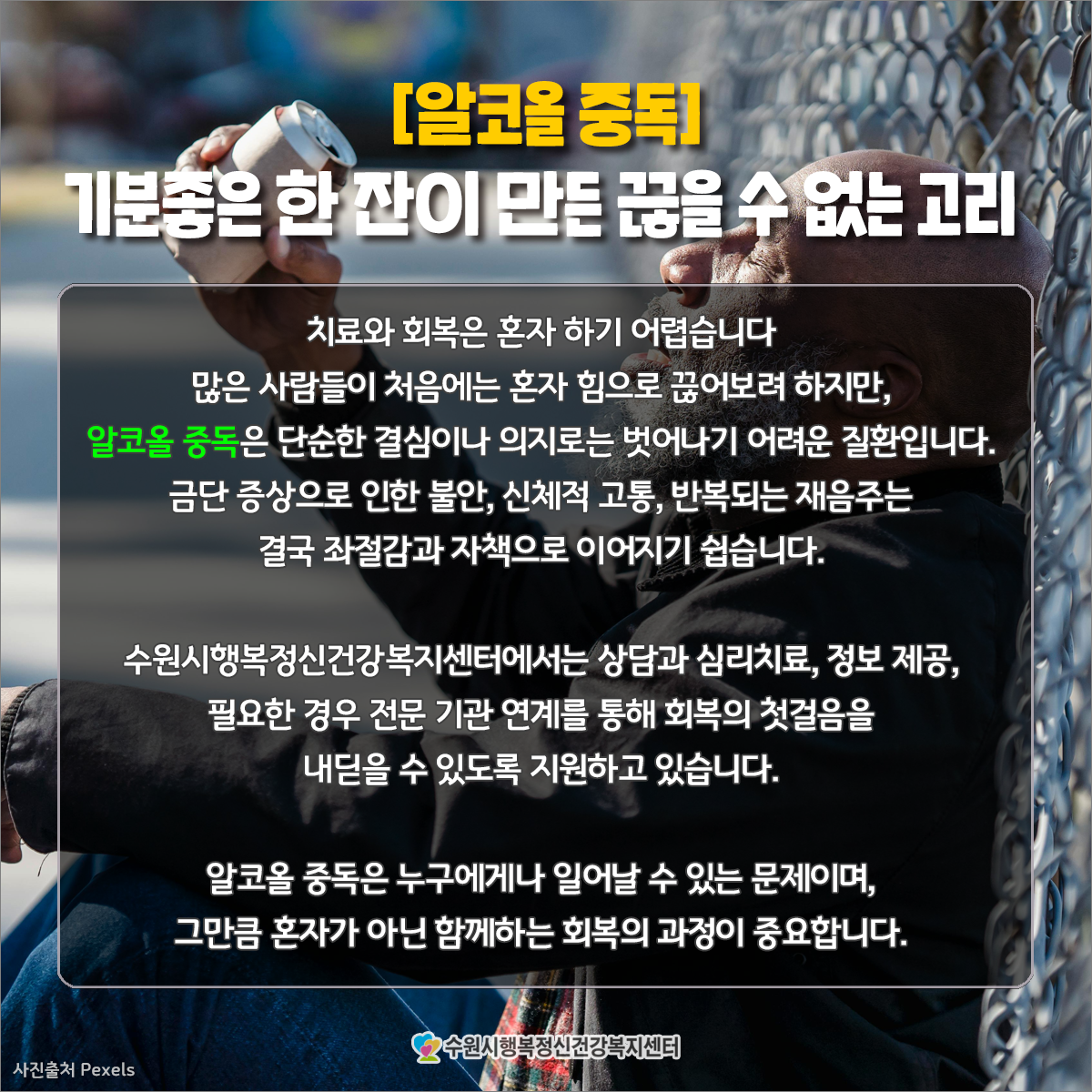 알코올 중독은 누구에게나 일어날 수 있는 문제이며,