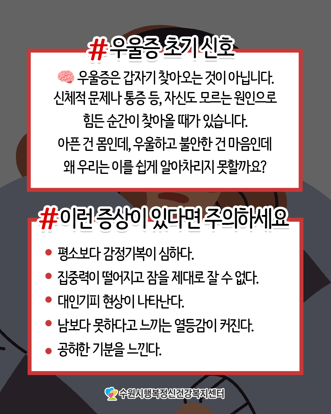 우울증은 작게 시작되어도 일상에 큰 영향을 주곤 합니다.