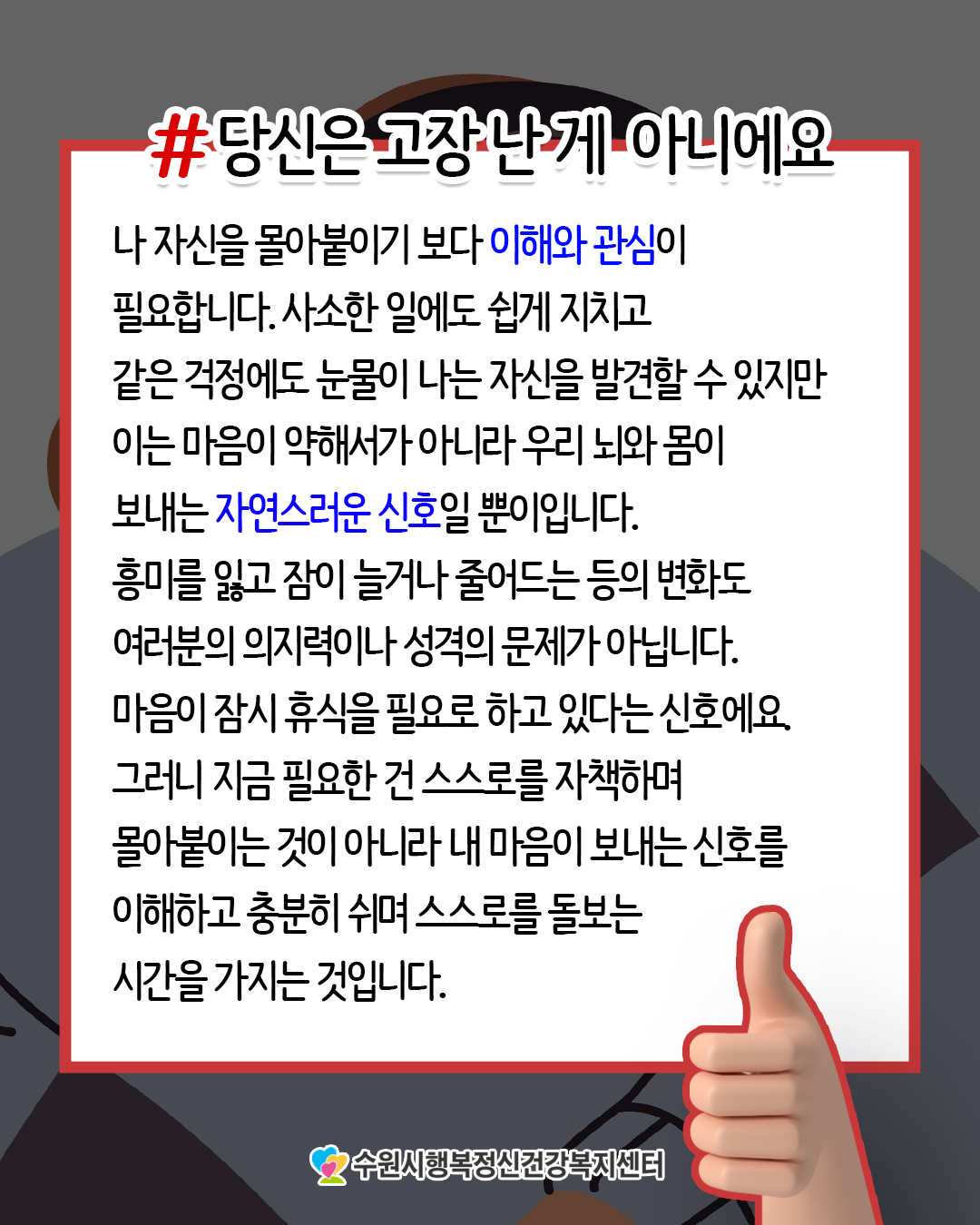 휴식을 주는 것이 회복의 첫걸음입니다.