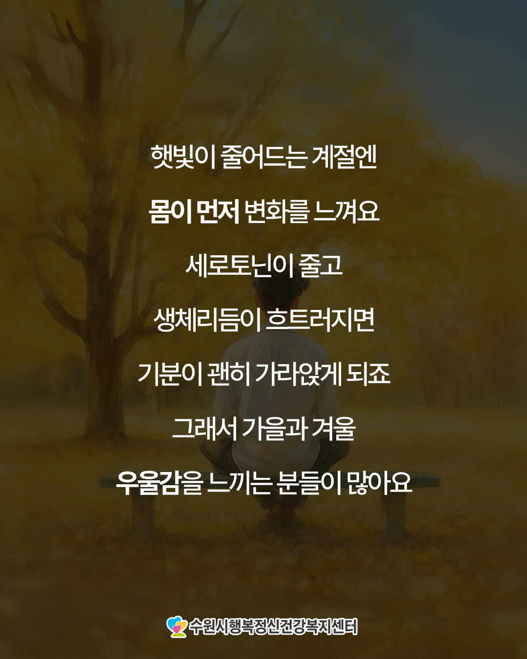 그래서 가을과 겨울에는 우울감을 느끼는 분들이 많습니다