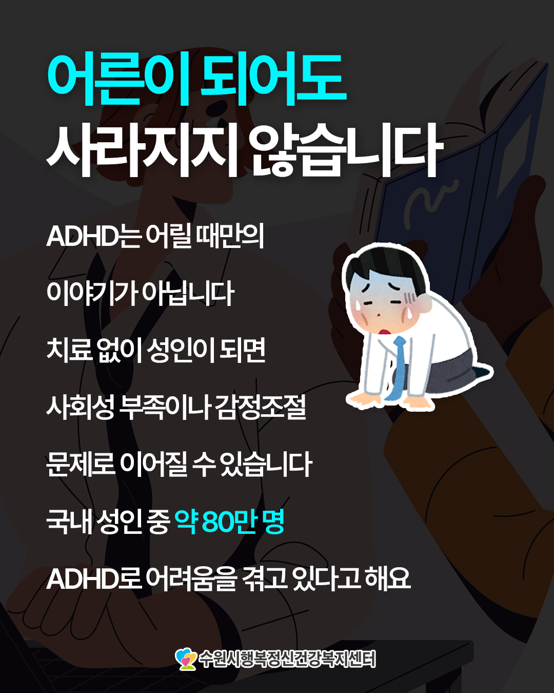 그만큼 ‘성인 ADHD’는 더 이상 낯선 이야기가 아닙니다.