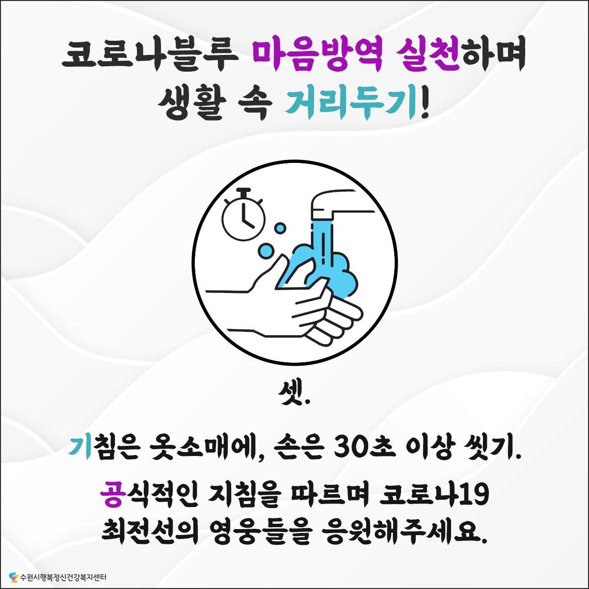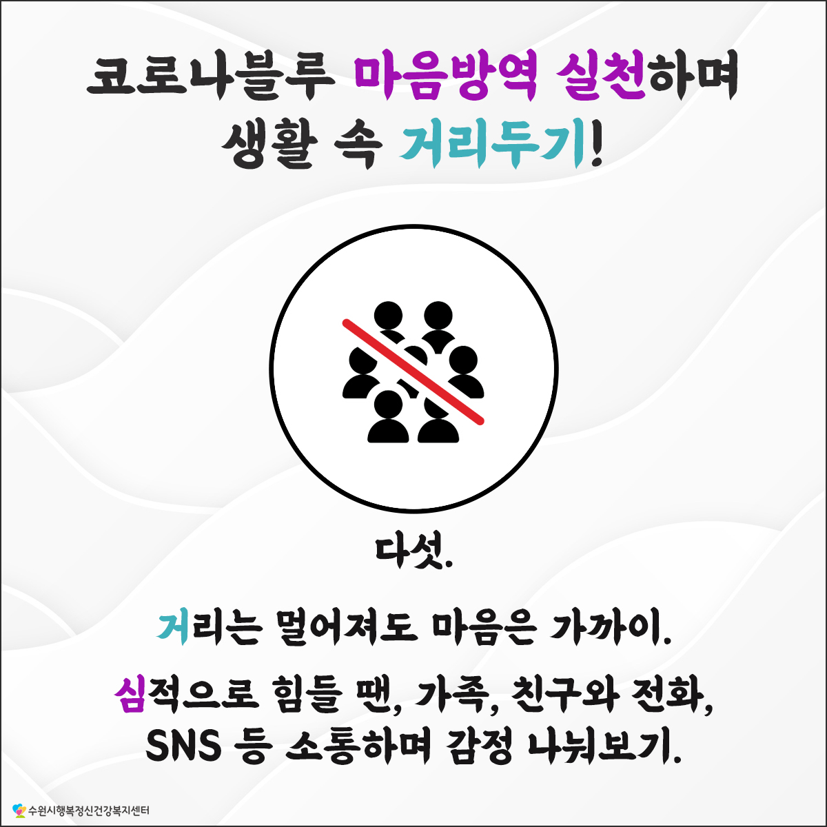 생활속 거리두기 실천법과 함께 마음방역 실천법을 알아볼까요!
