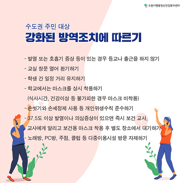 | 강화된 방역조치 따르며 내 마음건강 챙기기! | |||
