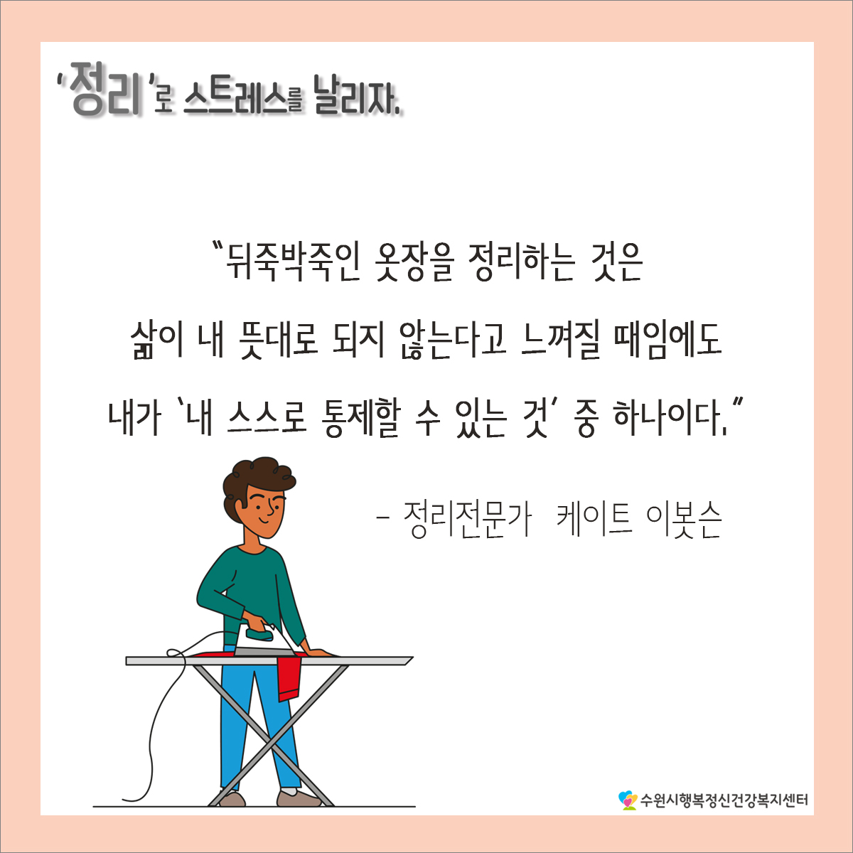 “엉망인 옷장을 정리하는 것은 삶이 내 뜻대로 되지 않는다고 느껴질 때임에도 내가 내 스스로 통제할 수 있는 것 중 하나이다.” -케이트 이봇슨(정리 전문가)