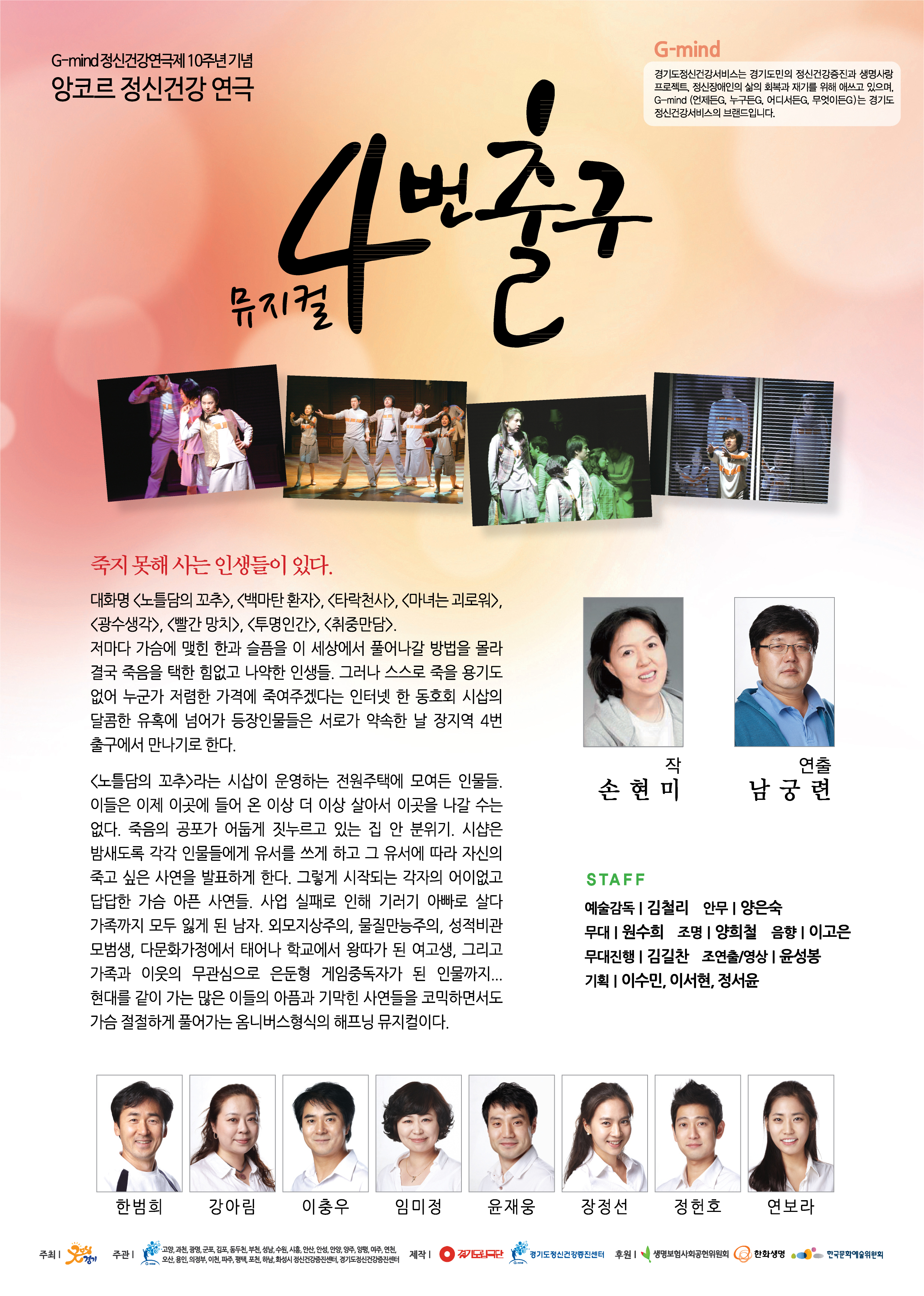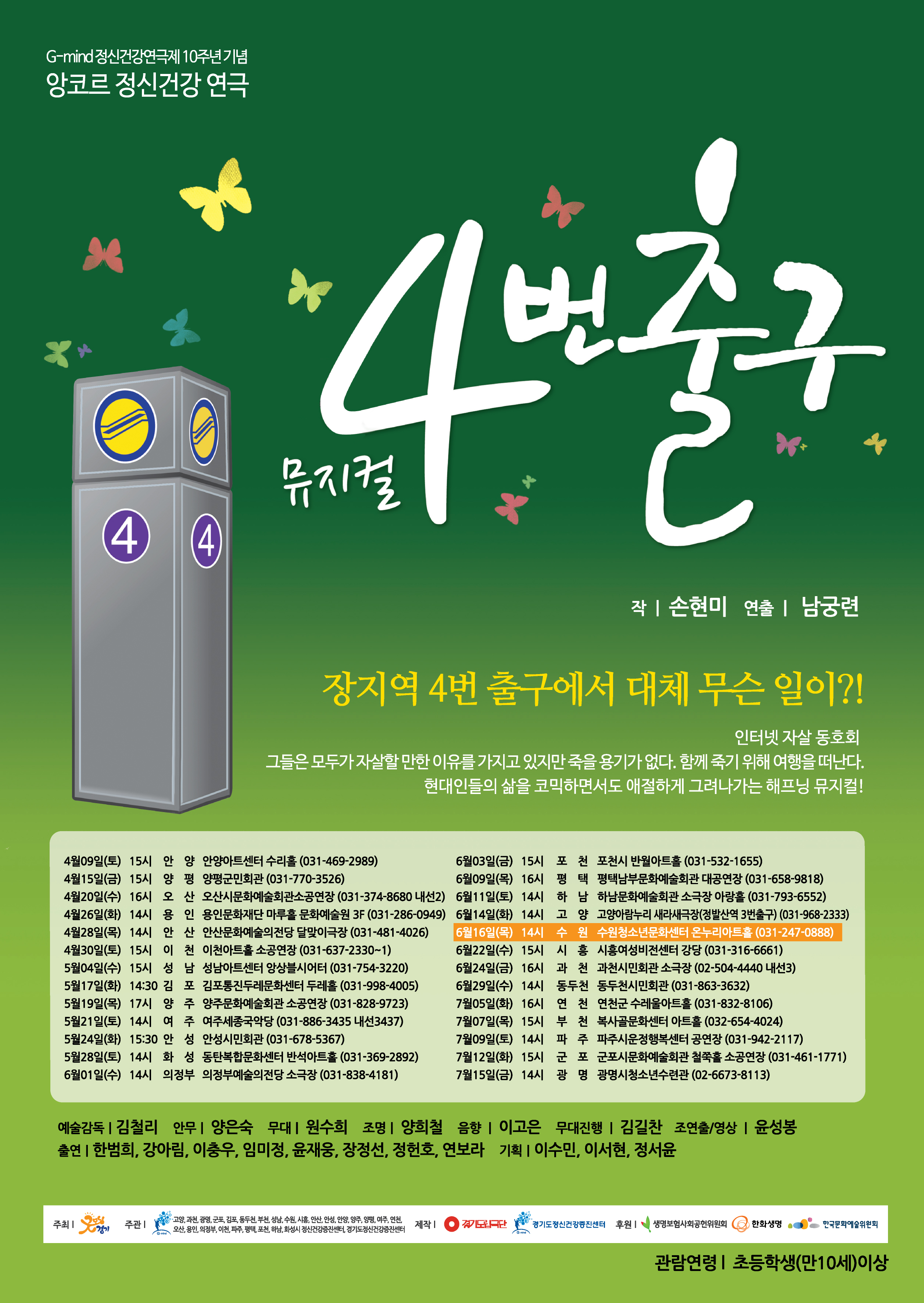 | [정신건강연극제 10주년 기념] 뮤지컬 4번 출구 (6월 16일 공연) | |||