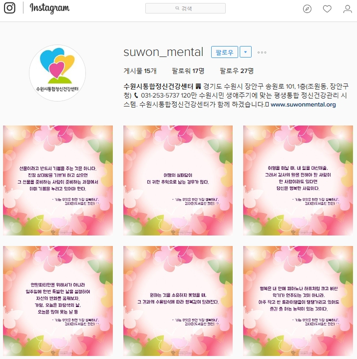 | 수원시통합정신건강센터 인스타그램 오픈! | |||