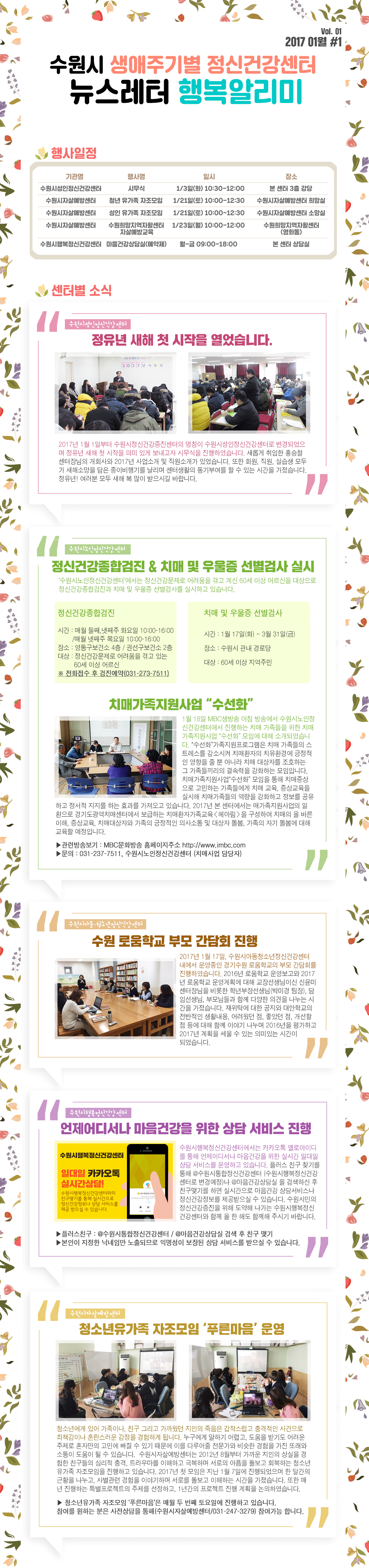 | 수원시 생애주기별 정신건강센터 2017년 1월 행복알리미입니다. | |||
