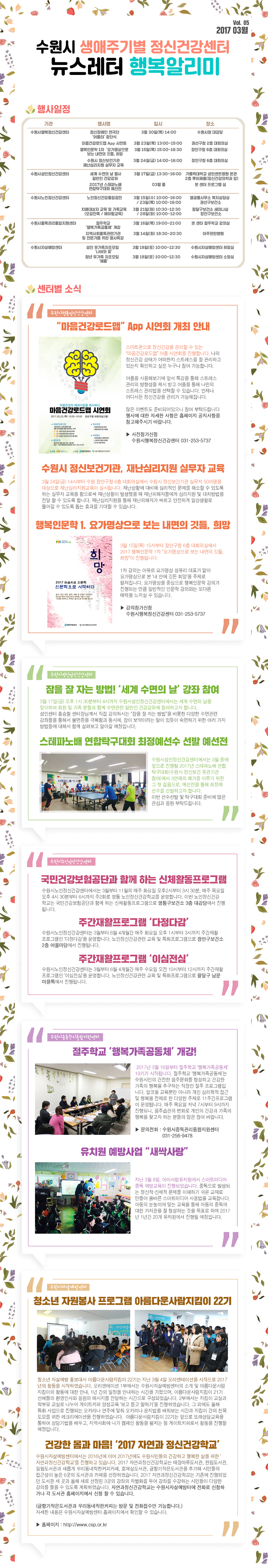 | 수원시 생애주기별 정신건강센터 2017년 3월 Vol.5 행복알리미입니다. | |||