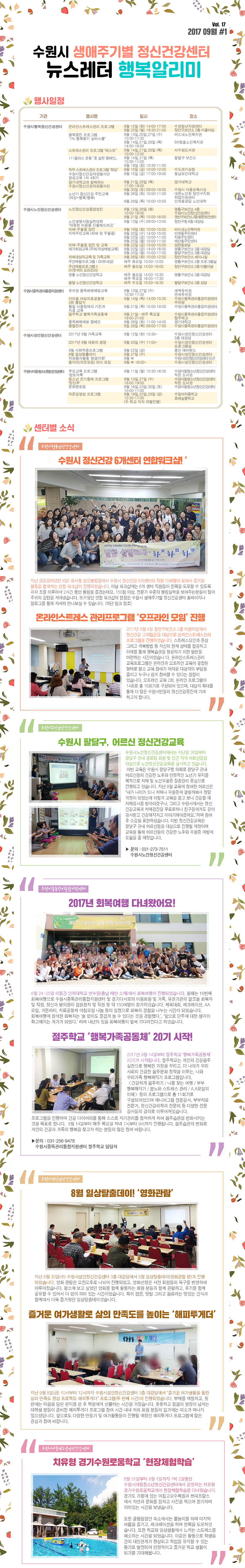 | 수원시 생애주기별 정신건강센터 2017년 9월 Vol.17 행복알리미입니다. | |||
