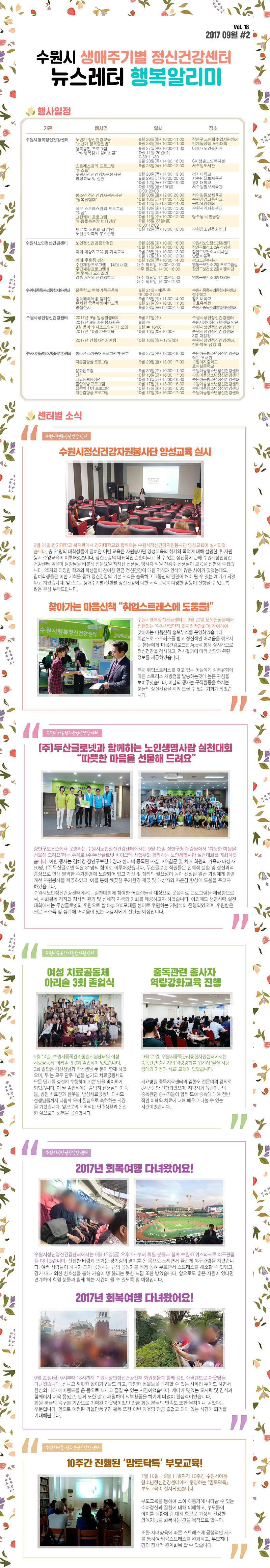 | 수원시 생애주기별 정신건강센터 2017년 9월 Vol.18 행복알리미입니다. | |||