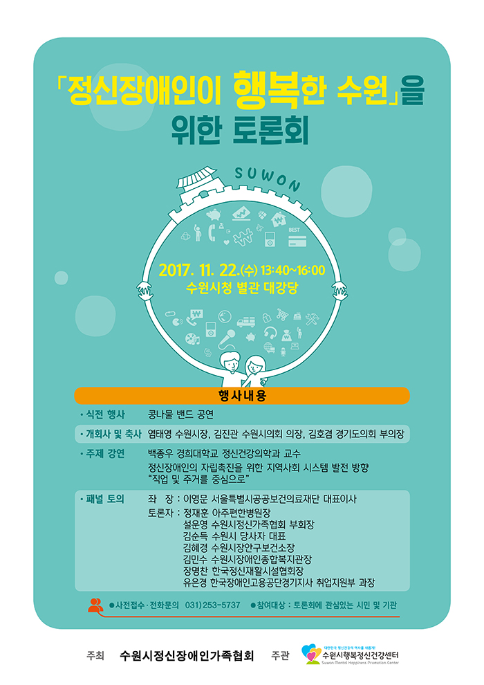 | '정신장애인이 행복한 수원'을 위한 토론회 개최 | |||