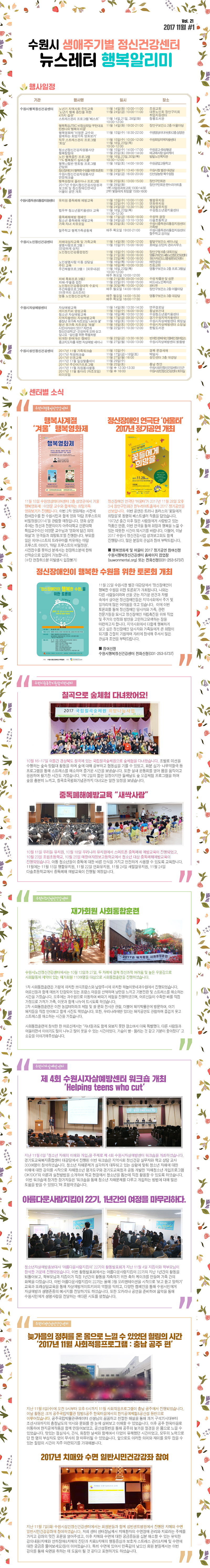 | 수원시 생애주기별 정신건강센터 2017년 11월 Vol.21 행복알리미입니다. | |||