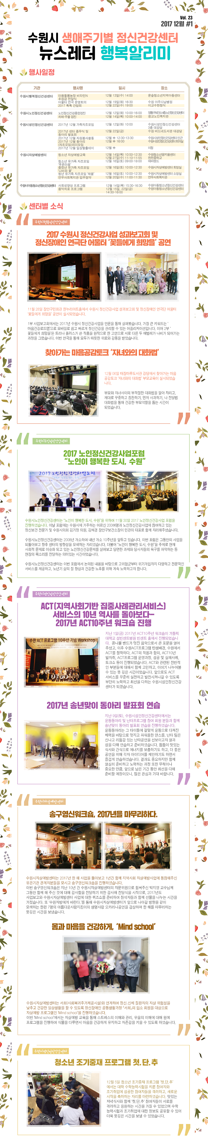 | 수원시 생애주기별 정신건강센터 12월 Vol.23 행복알리미입니다. | |||