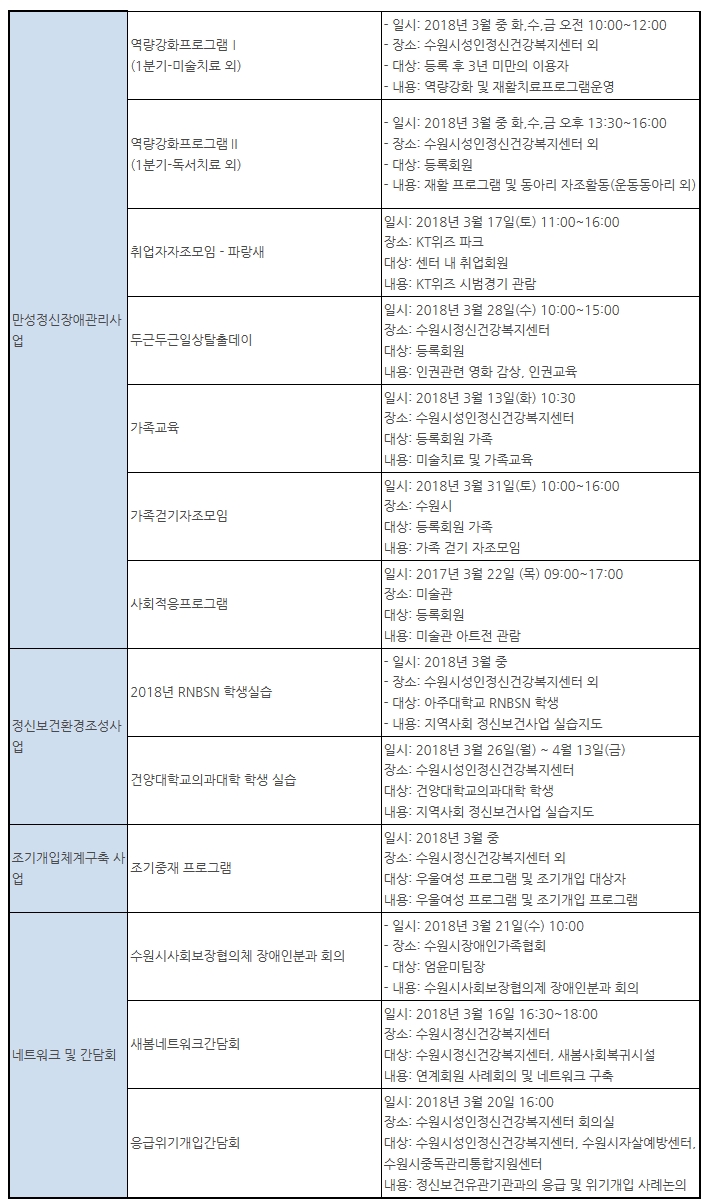 | 수원시성인정신건강복지센터 3월 일정 | |||